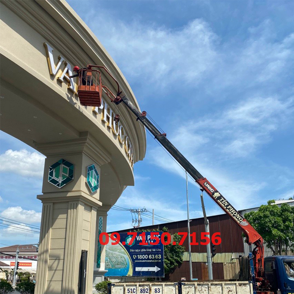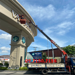 Hình ảnh thi công Mica cho cổng chào BĐS Vạn Phúc